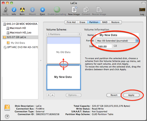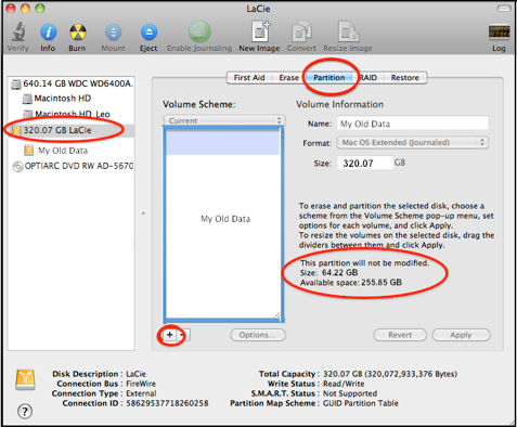 But if you’re on an earlier version of OSX, to partition the disk you’re running from, you must boot from a different source, such as an external HD with OSX installed, or your OSX Install disc. See the pink box in item #1 for instructions.