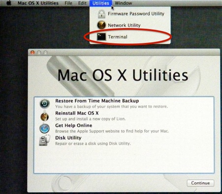 When done, close the window and quit the Utilities menu. (On Lion 10.7.x and later, then quit the Mac OS X Utilities menu). You should see an option to Choose Startup Disk so you can restart normally.