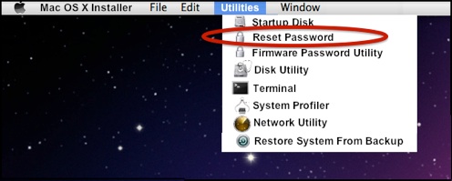 •On the next screen, select Utilities in the Menubar, then Reset Password:
