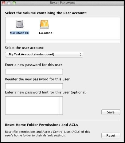 If you can't reset a user password normally, or if the permissions on a user account's home folder are incorrect and can't be fixed otherwise, you can do either of those by starting from the Recovery HD (Lion) or OSX Install Disc (earlier versions of OSX). (If you're not sure what version of OSX you're running, click here).