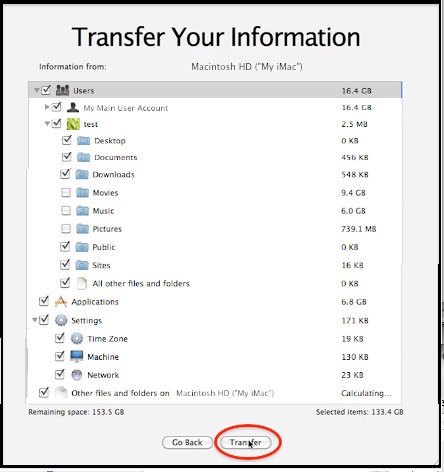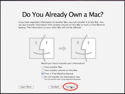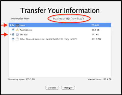 •From another volume on this Mac includes "clones" on USB or FireWire drives. You'll next see the Transfer Your Information window.
