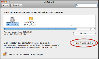 See How to use and troubleshoot FireWire target disk mode for details and troubleshooting tips.