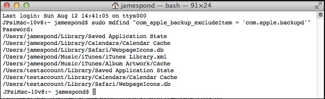 sudo mdfind "com_apple_backup_excludeItem = 'com.apple.backupd'"