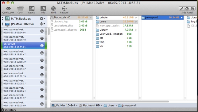 Note that both these applications work by comparing a completed backup you select to the one before it. So if you select a large backup, it’s going to take a while to determine, calculate, and display the items. If your backups are on a network, connect via Ethernet if possible. It will still take a while, but be 2-3 times faster than WIFI.