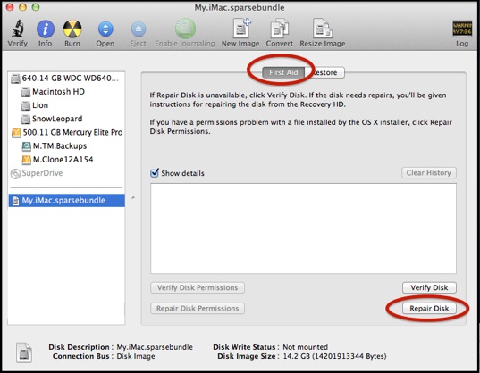 (If you get a message that the sparse image is in use, or can’t be unmounted, see section #C12.)