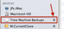 It will be shown with a disk image icon, and is usually named "Time Machine Backups," but if it was created on Leopard or by some NAS (network) drives, it may be "Backups of <computer name>."
