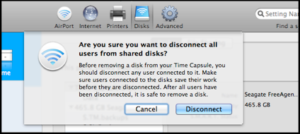 Disconnecting from Disks via Airport Utility 5 without also disconnecting all users from the Internet: