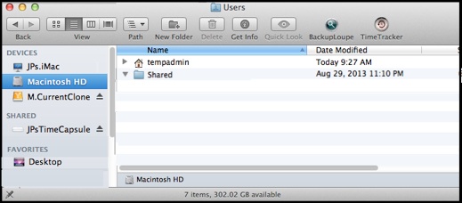 9.Log on to each of the restored accounts. Each should have access to all the files in tehir home folders, plus the ones in prior backups via the Time Machine browser (the "Star Wars" display).