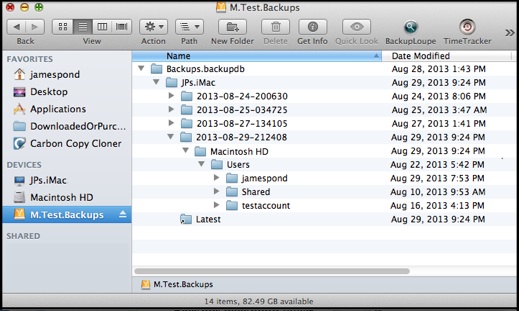 6.Open a second Finder window to your backups and navigate to the most recent successful one.