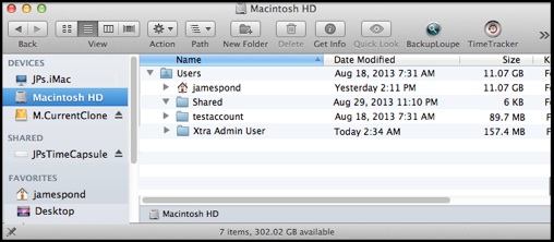 7.If there's anything you need in the special Shared or other folders, compare it to the current contents as restored. If in doubt, rename the restored one and drag the one from the backups to Users or the top level, and resolve any differences later.