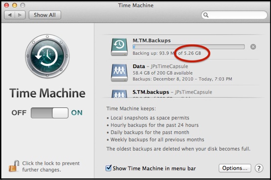 •As noted above, the estimate is made using the number of 4 KB blocks occupied by the new or changed file or folder, but the actual amount copied is in bytes. So a 100-byte file will be estimated at 4 KB. Usually you won't notice this, but on an initial backup, or after an OSX update, there will be many thousands of mostly very small new or changed files in the System and Applications folders, so the cumulative difference may be substantial.
