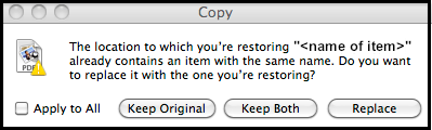 Worse, the message doesn't tell you how many of these problems there are, much less provide any names, as the one about different versions does. Your only options are to stop the restore entirely, or let it continue to restore only the files that aren't a problem.