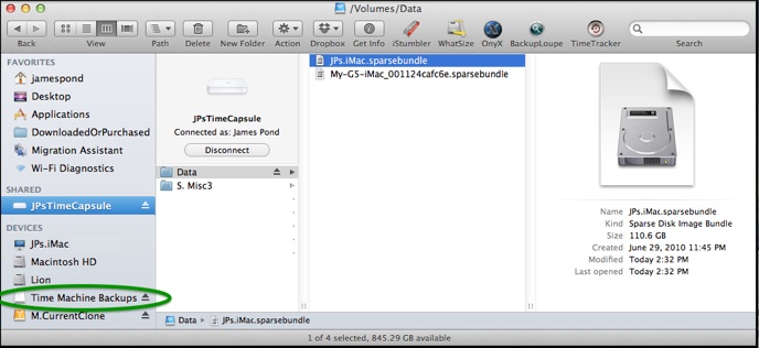 The Time Capsule's internal HD is named "Data" by default (you can change it via Airport Utility). Any other drives connected to it will also be shown (such as "S. Misc3" in the sample).